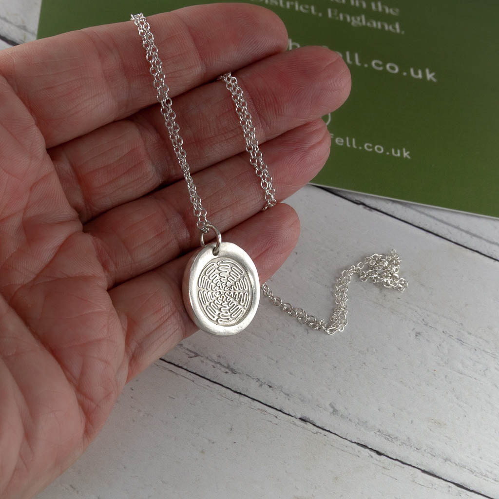 This beautiful handcrafted silver necklace takes its inspiration from The Hundred Year Stone which you will find on the shores of Derwentwater at Calf Close Bay in the Lake District.