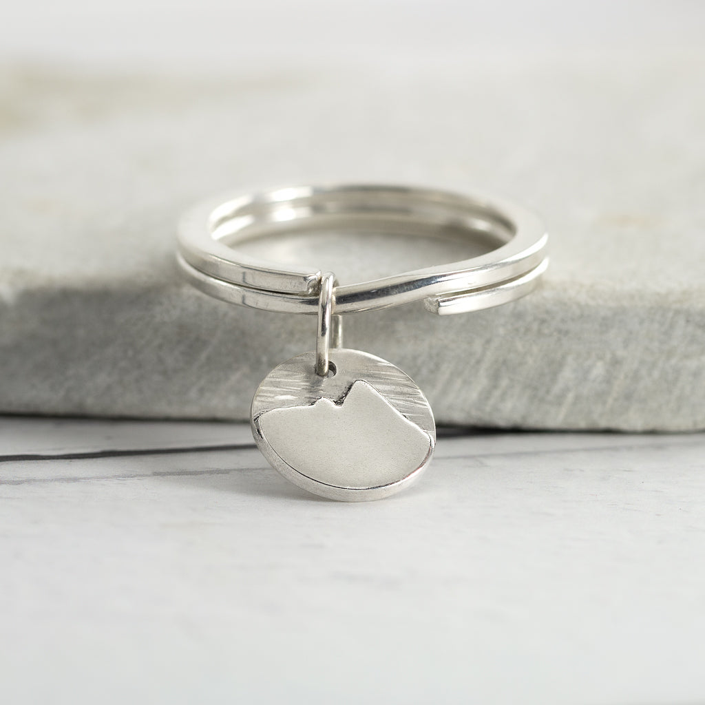 Carefully crafted by hand is this beautiful silver Helvellyn silhouette keyring that captures the well known and much loved fell.  The design has a matt finish with polished highlights mainly around its edge.