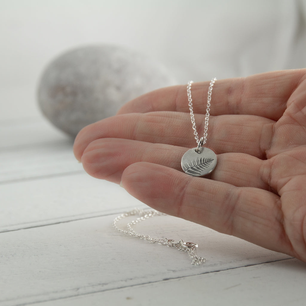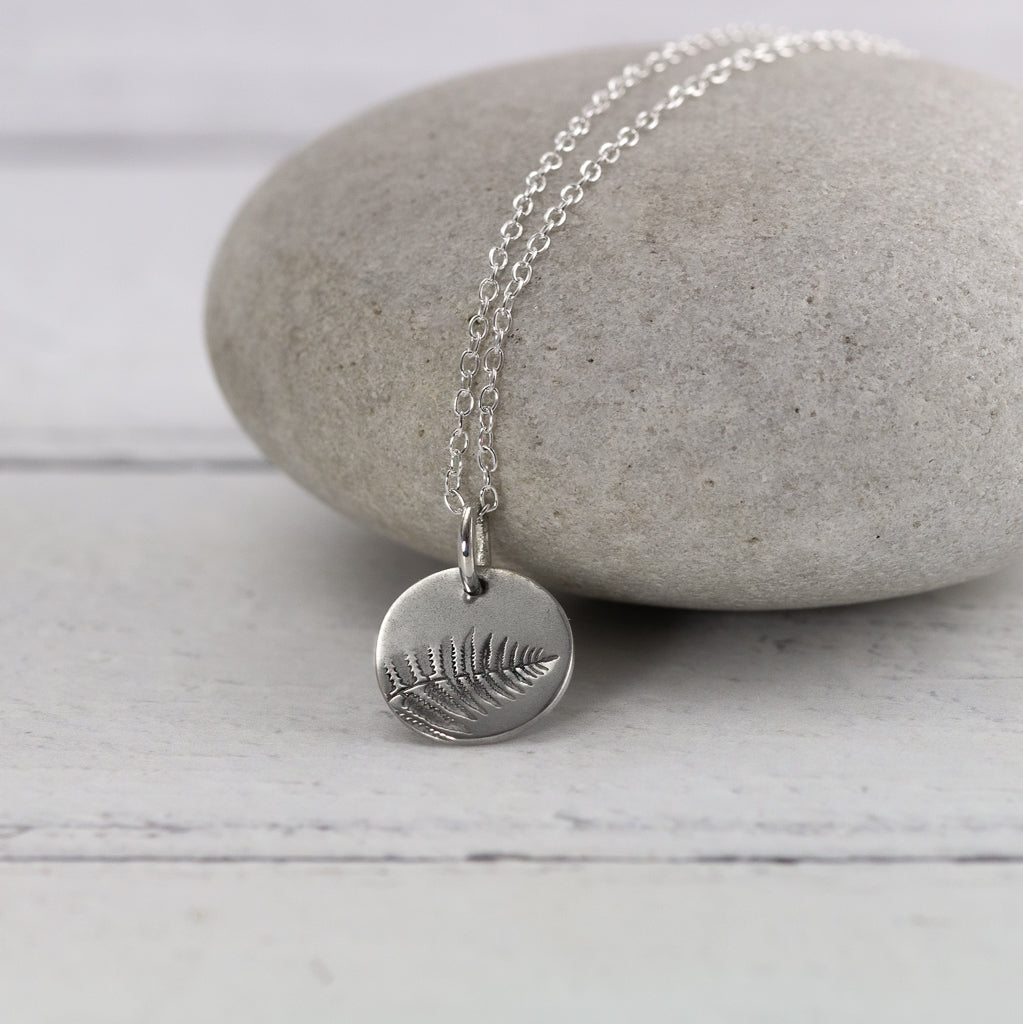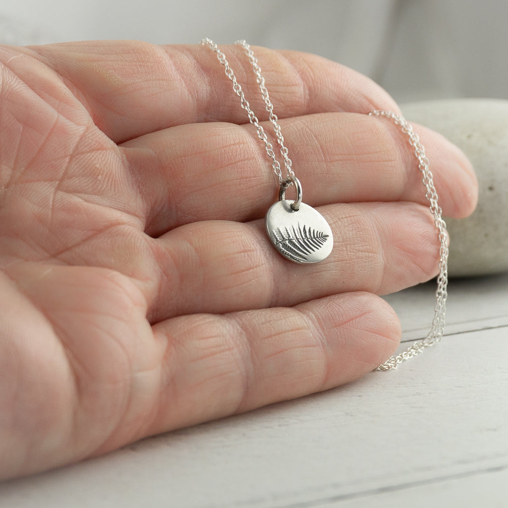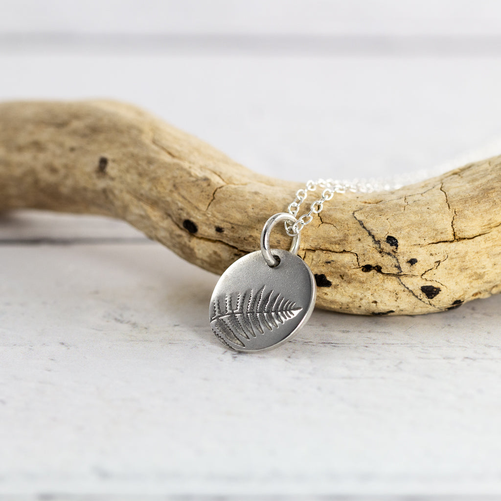 The impression has been achieved by using a fern stamp, that is unique to By The Fell, and hand stamping it carefully on to silver.